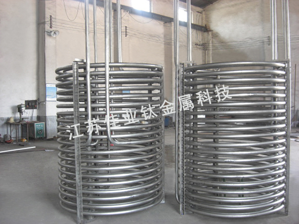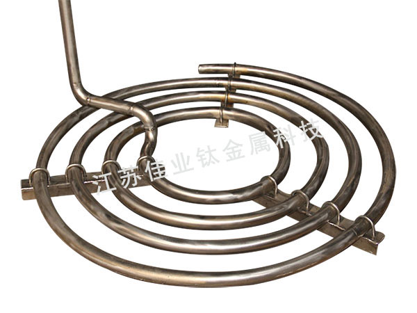 鈦盤管主要用來作為容器的加熱和冷卻,鈦盤管的固定方式分為可拆和不可拆2種,這要根據(jù)物料的介質(zhì)和對鈦盤管的腐蝕情況而定,但在設(shè)計中主要以可拆式為主,方便鈦盤管的檢修及清洗。